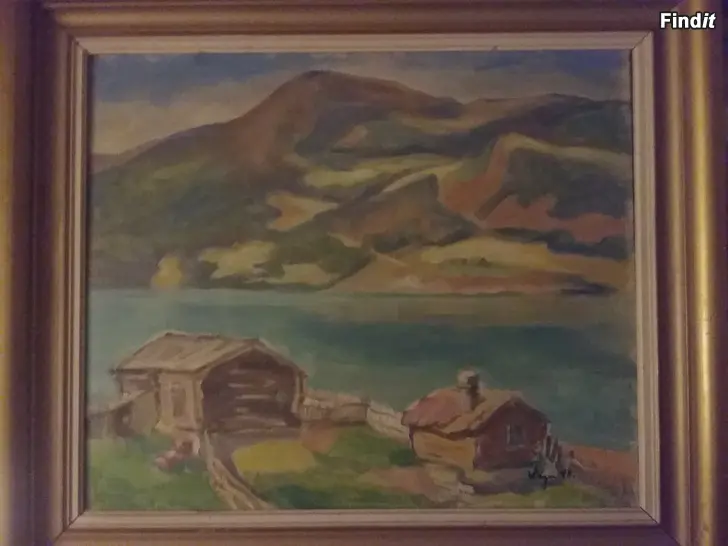 Levylle maalattu kiva öljyvärimaalaus Norjan vuonoilta, signeerattu Wager48.